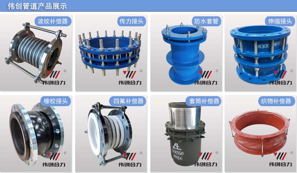 河南偉創管道科技有限公司目前具備可達直徑4000mm管道設備生產能力。主要產品為:套筒補償器伸縮接頭,橡膠軟接頭,雙法蘭傳力接頭,套筒補償器,旋轉補償器,球形補償器,波紋補償器,柔性防水套管,非金屬補償器,直流介質無推力補償器,可撓伸縮管等管道設備。也可以支持來圖定制產品,歡迎新老客戶咨詢!